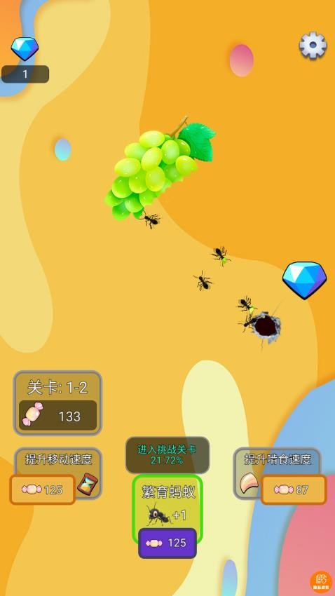 2、策略与效率并重,需合理分配蚂蚁数量、升级啃食能力与移动速度,以最短时间完成关卡目标,获得更高评价与丰厚奖励。