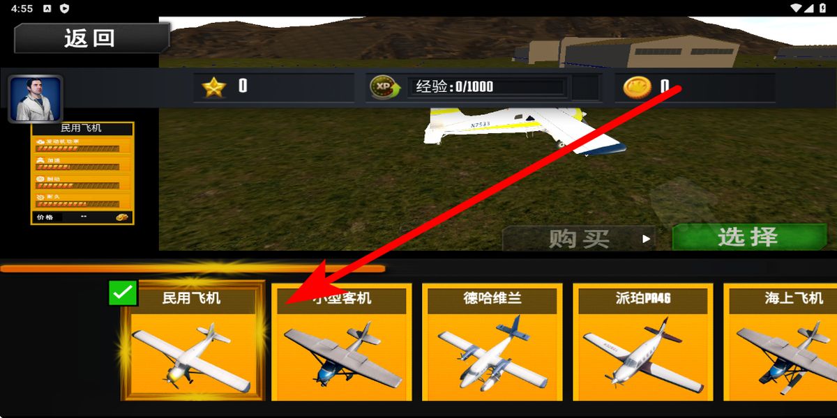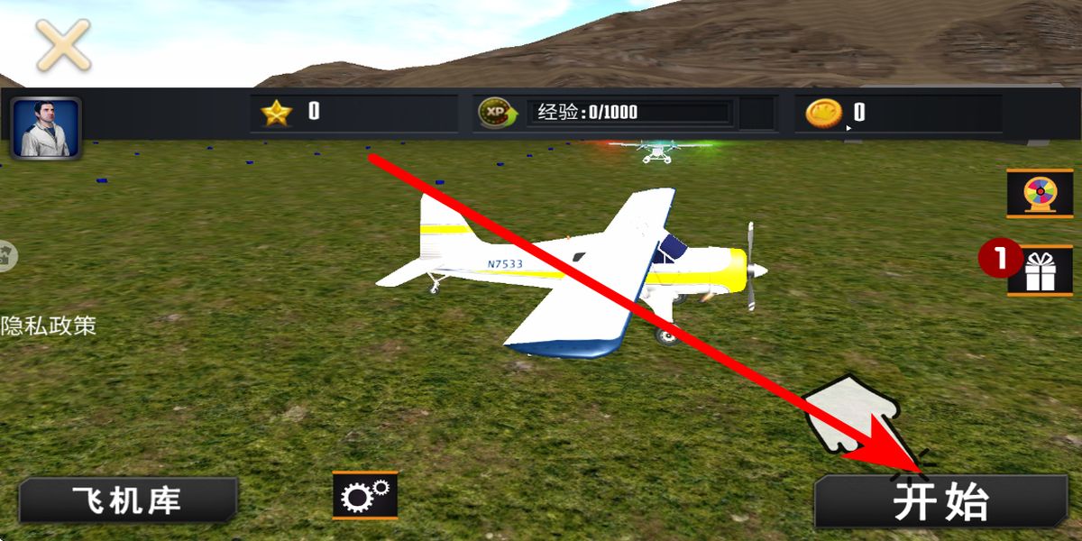 1、开始游戏后,在飞机库清晰界面点击右下角开始,选定想驾驶的飞机,像民用飞机、小型客机等不同类型,确认选择后进入飞行准备流程。