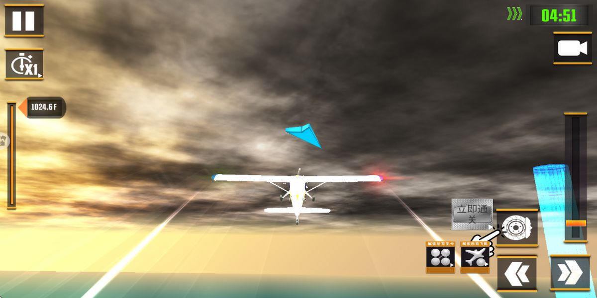 3、完成降落任务:接近目的地机场时,调整飞机姿态,控制速度和高度,平稳降落在跑道上,成功完成任务,解锁更多飞机和后续挑战。