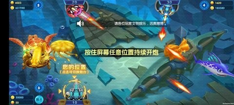 街机模式:还原经典捕鱼机操作,炮台升级、倍率切换,一网打尽黄金鱼群