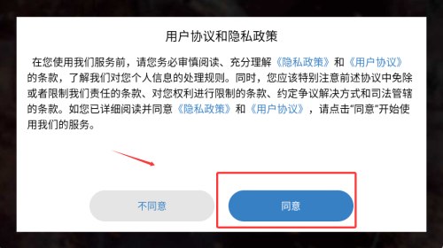 1、首次启动需确认用户协议条款,勾选同意选项后自动跳转至游戏主界面。