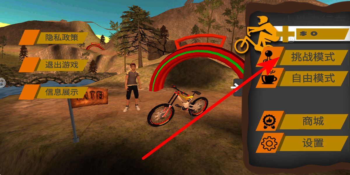 1、进入游戏后,点击继续按钮开启游戏,在弹出菜单选挑战模式或自由模式,挑战模式有明确目标,自由模式可以自由随意骑行探索。
