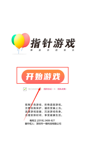 1、阅读协议:在奔跑吧笔芯开始界面,浏览服务协议与隐私政策后点击“开始游戏”。