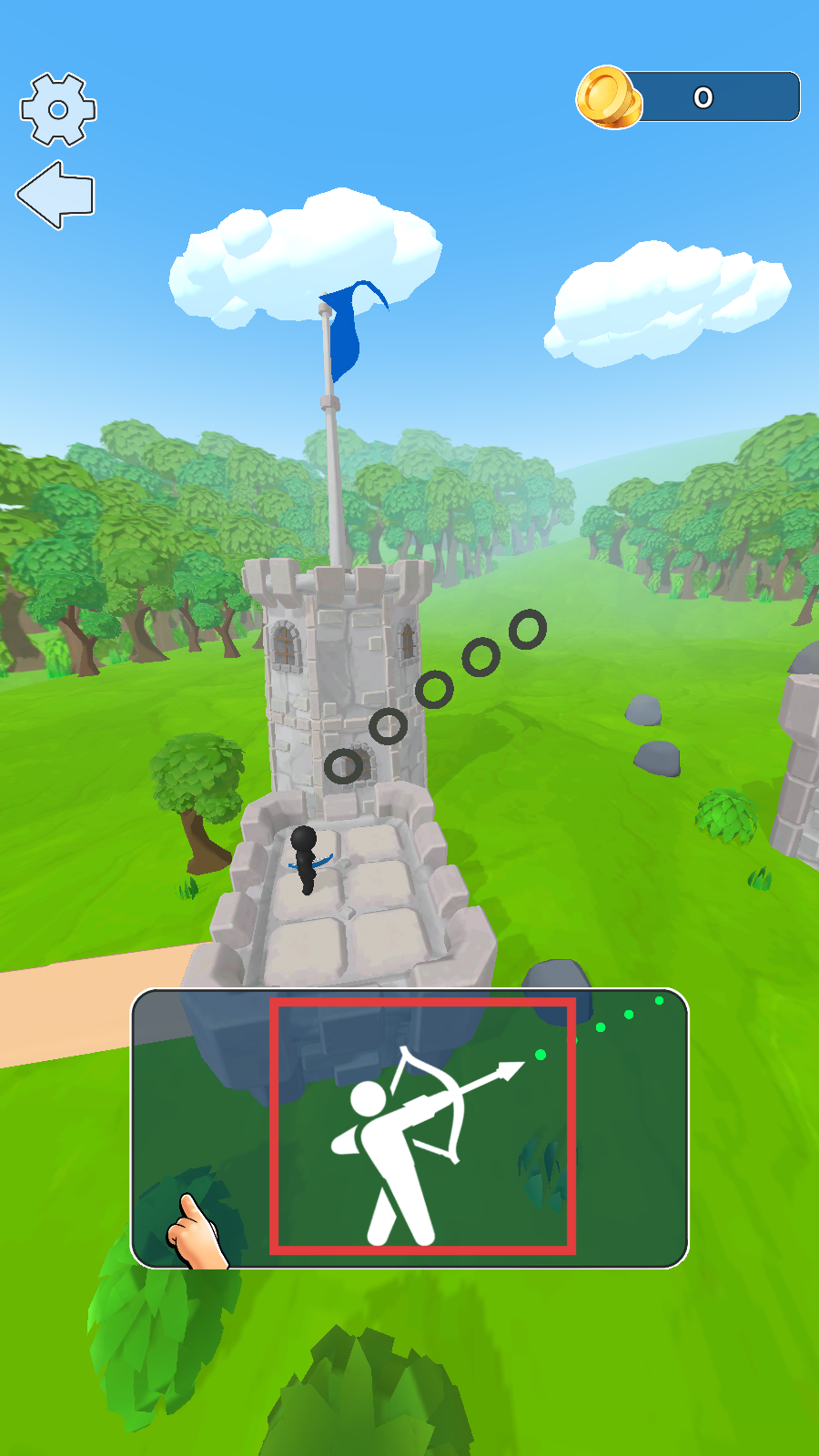 4、射箭控制方法:正式开始时拖动屏幕调整角度,松手释放箭矢攻击敌人,精准命中要害削减血量。