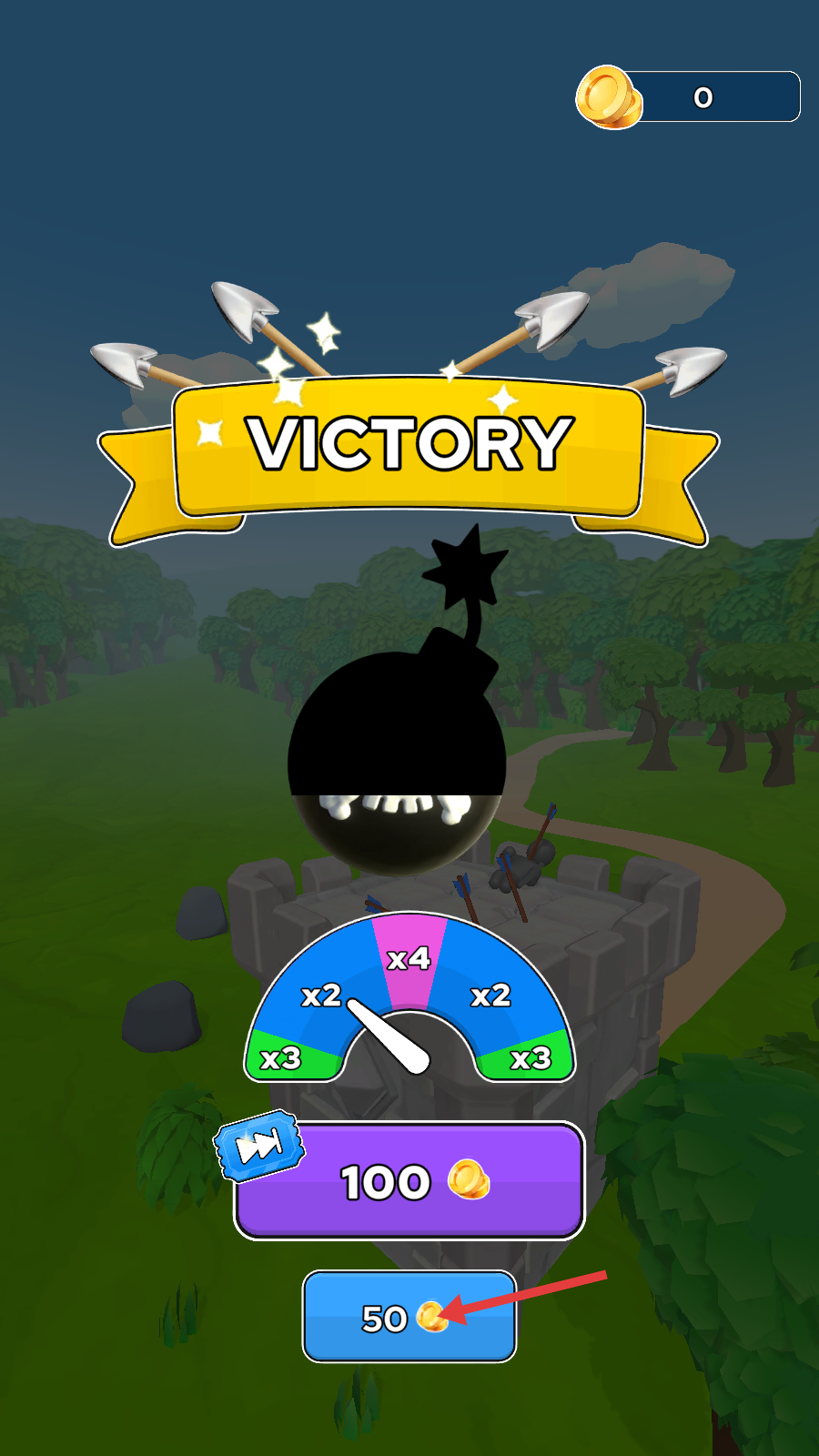 4、达成【VICTORY】,点击【50金币】按钮,领取奖励升级兵种。