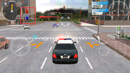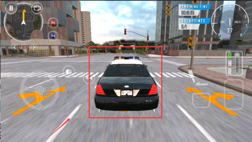 1、启动引擎操控警用巡逻车,在虚拟城市中执行追捕任务。