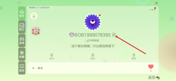 1、进入球球大作战游戏主界面,点击左上角带有紫色齿轮标志的头像,进入个人信息页面。