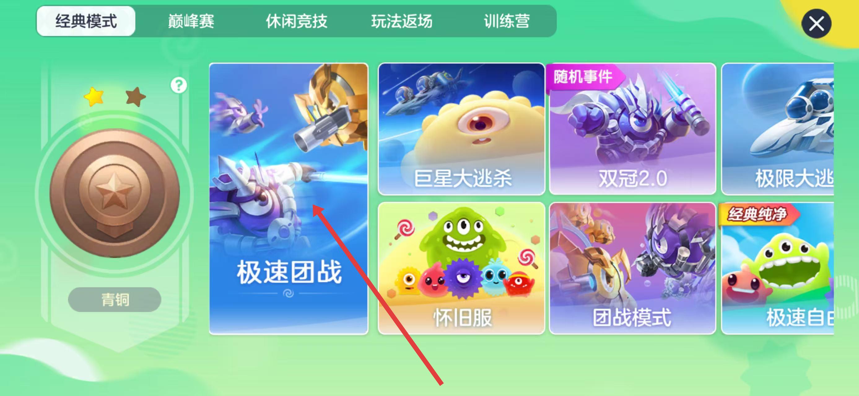 1、进入游戏后,在模式选择界面点击经典模式下的极速团战选项,准备开启团战玩法,感受激烈对抗的乐趣。