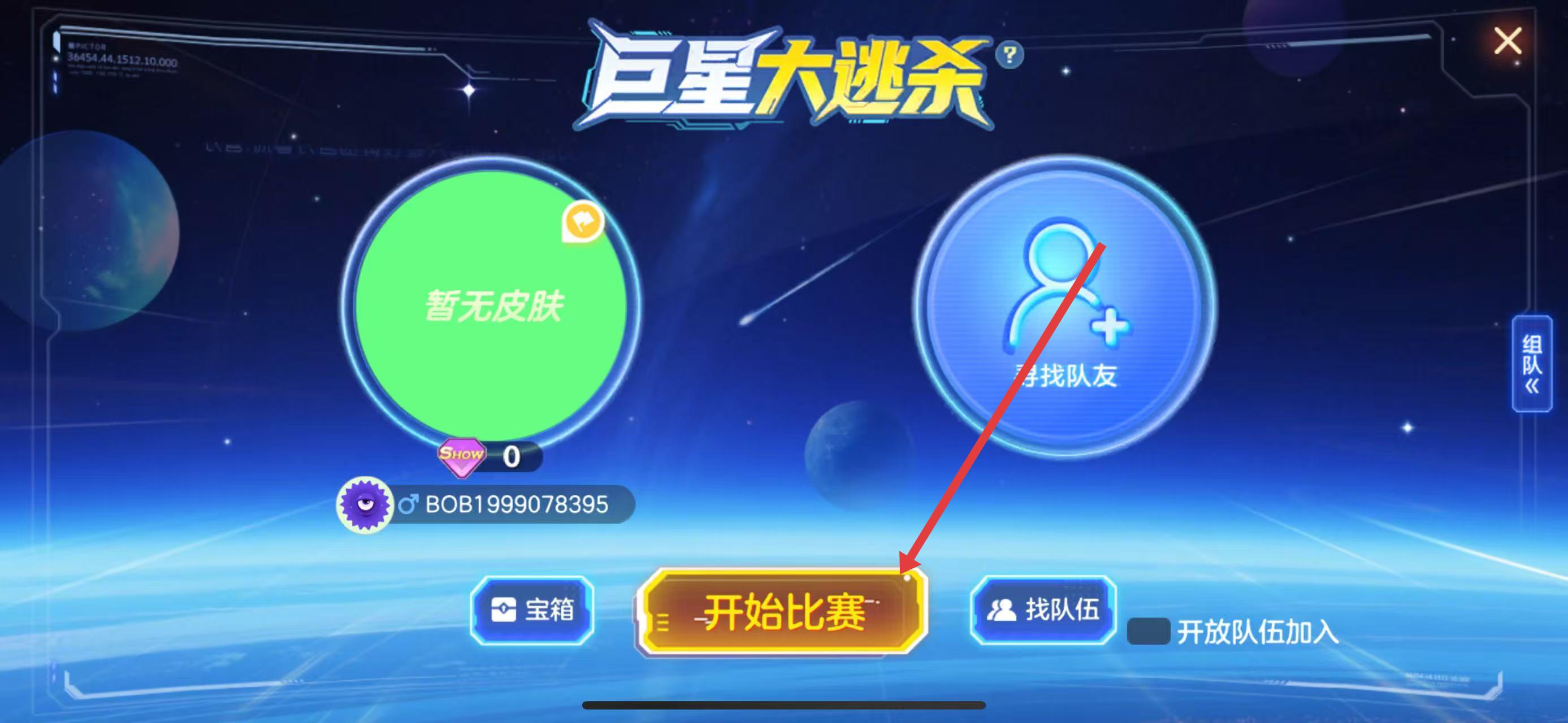 3、以巨星大逃杀模式为例,进入该模式界面后,可选择寻找队友组队,或直接点击开始比赛按钮,匹配对手,开启紧张刺激的球球对战之旅。