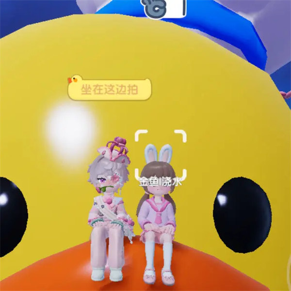 2、第二个:和好友在小黄鸭跳跳台的鸭子嘴巴上坐着拍照;