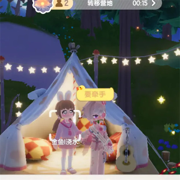 7、第七个:开启萤火虫潮,在第二阶段时和好友在帐篷旁牵手并且拍照。