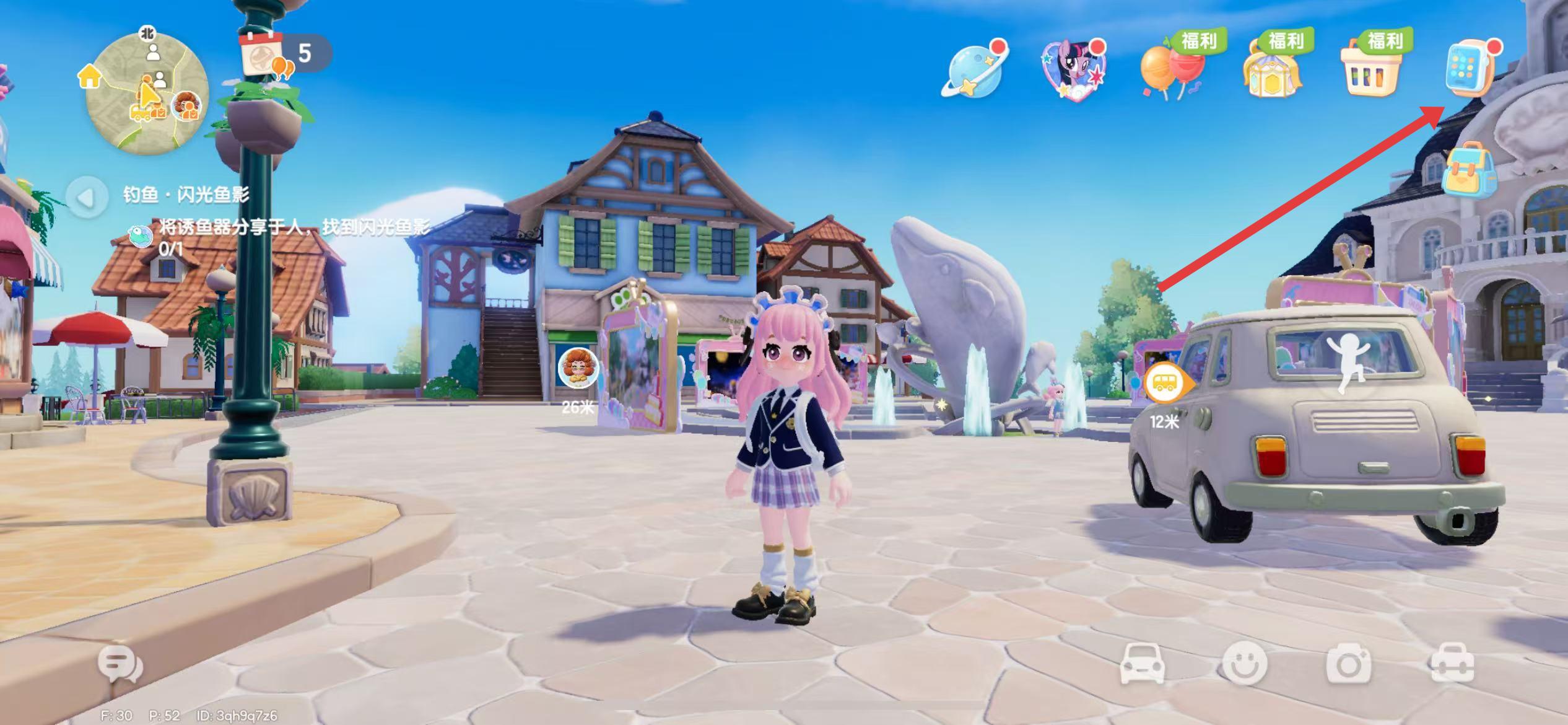 1、进入心动小镇游戏主界面点击右上方手表标识,打开功能菜单界面。