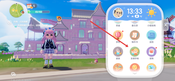 2、在功能菜单界面,找到并点击友情手帐的选项,进入好友相关的操作界面。