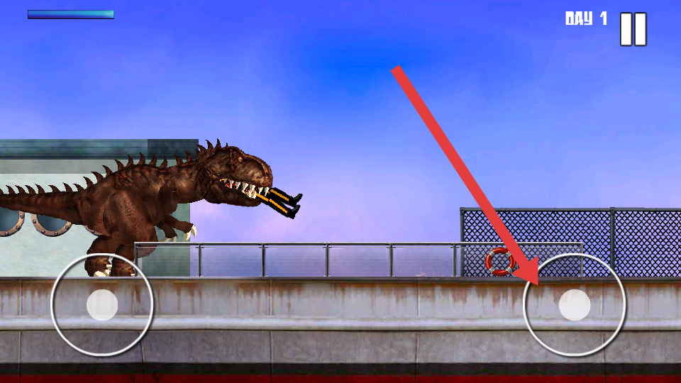 1、进入游戏操控恐龙,左侧虚拟摇杆控制移动方向,右侧按钮可触发攻击动作,先熟悉移动与攻击操作。