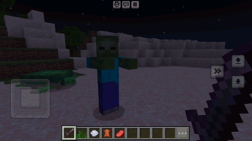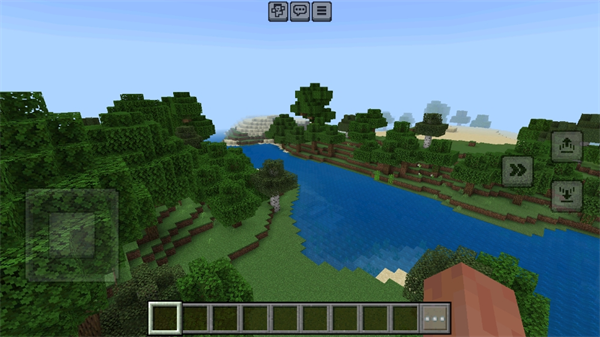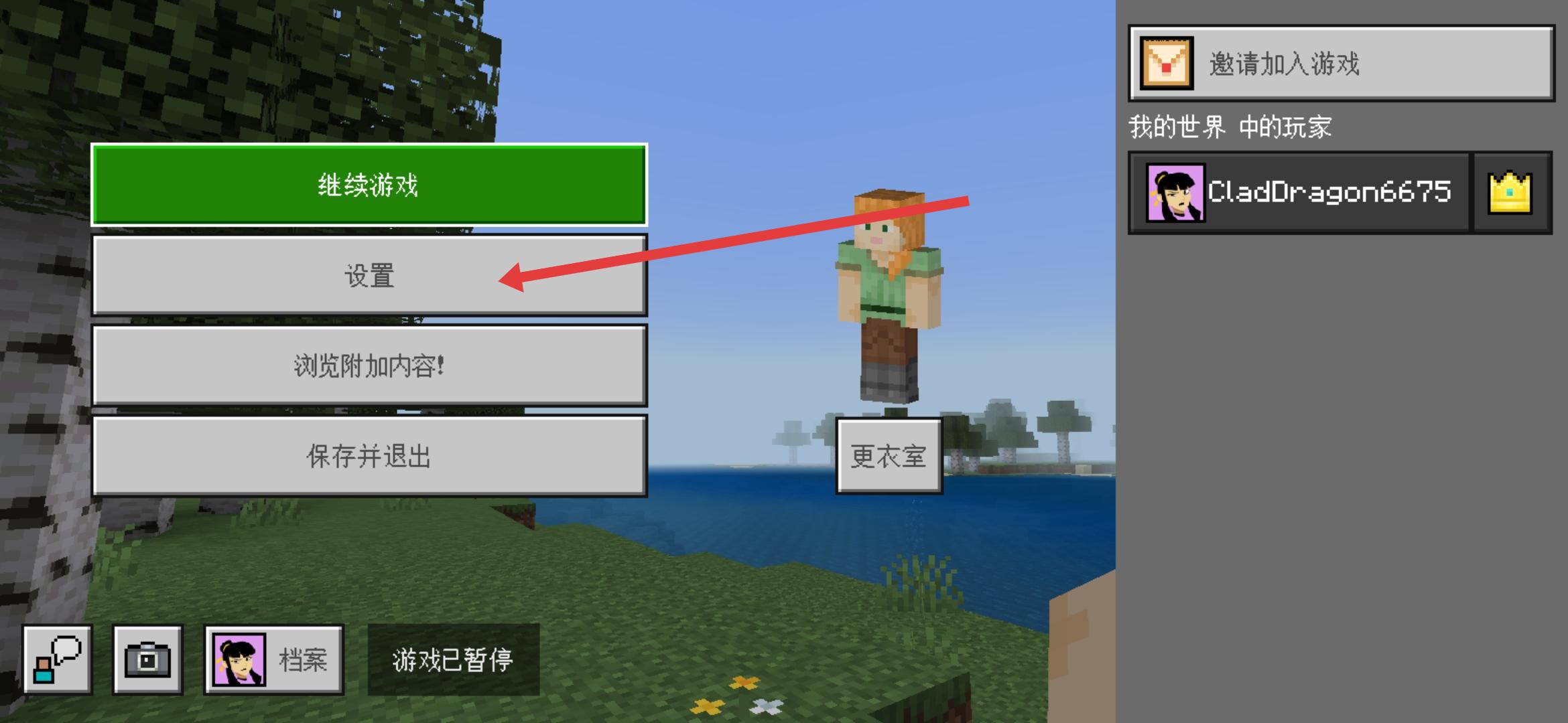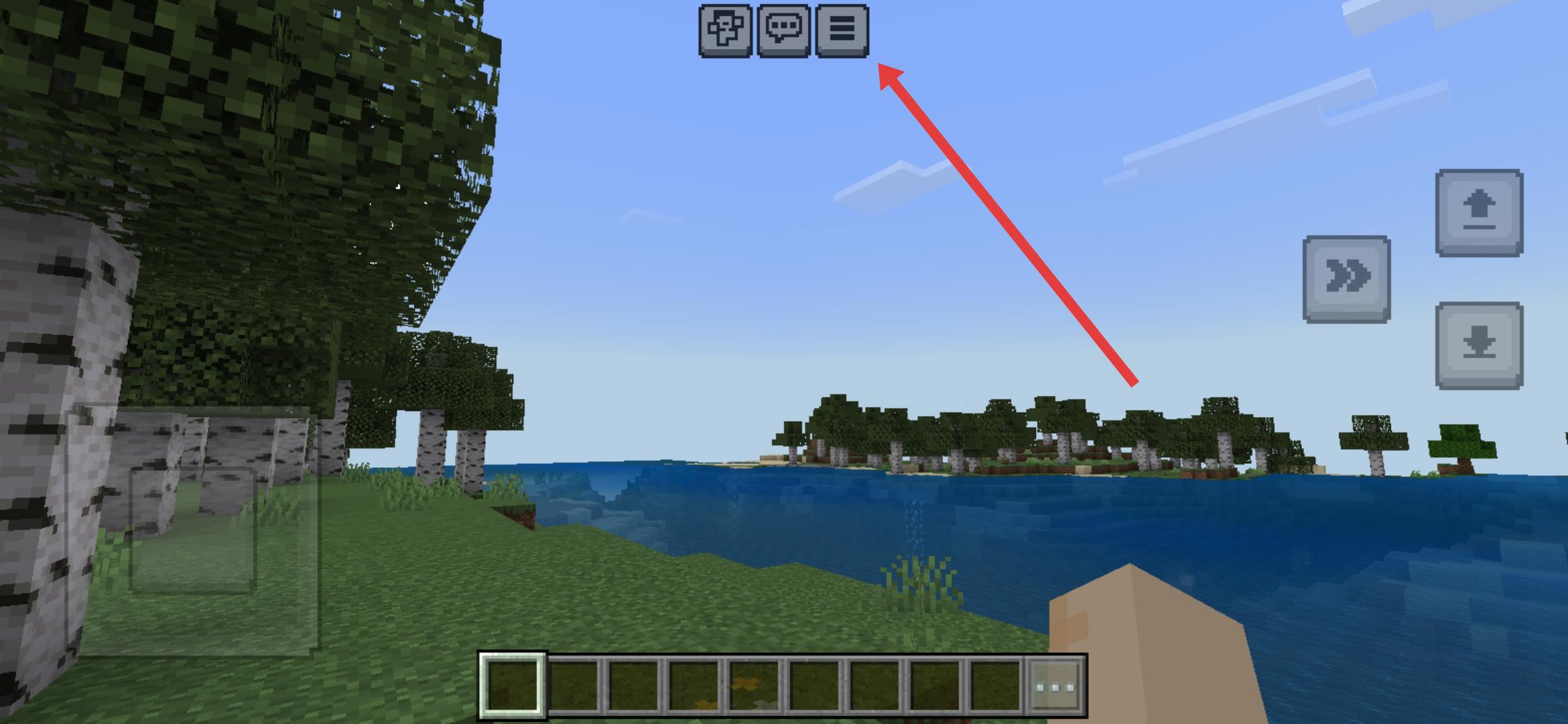 1、在我的世界游戏界面中,需要点击顶部三个点的菜单图标,呼出暂停菜单,为调整游戏模式做准备。