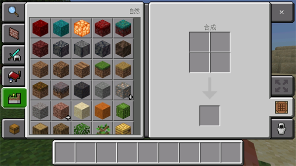 1、进入游戏后点击物品栏中最后面的【...】,查看所有的建造方块内容;