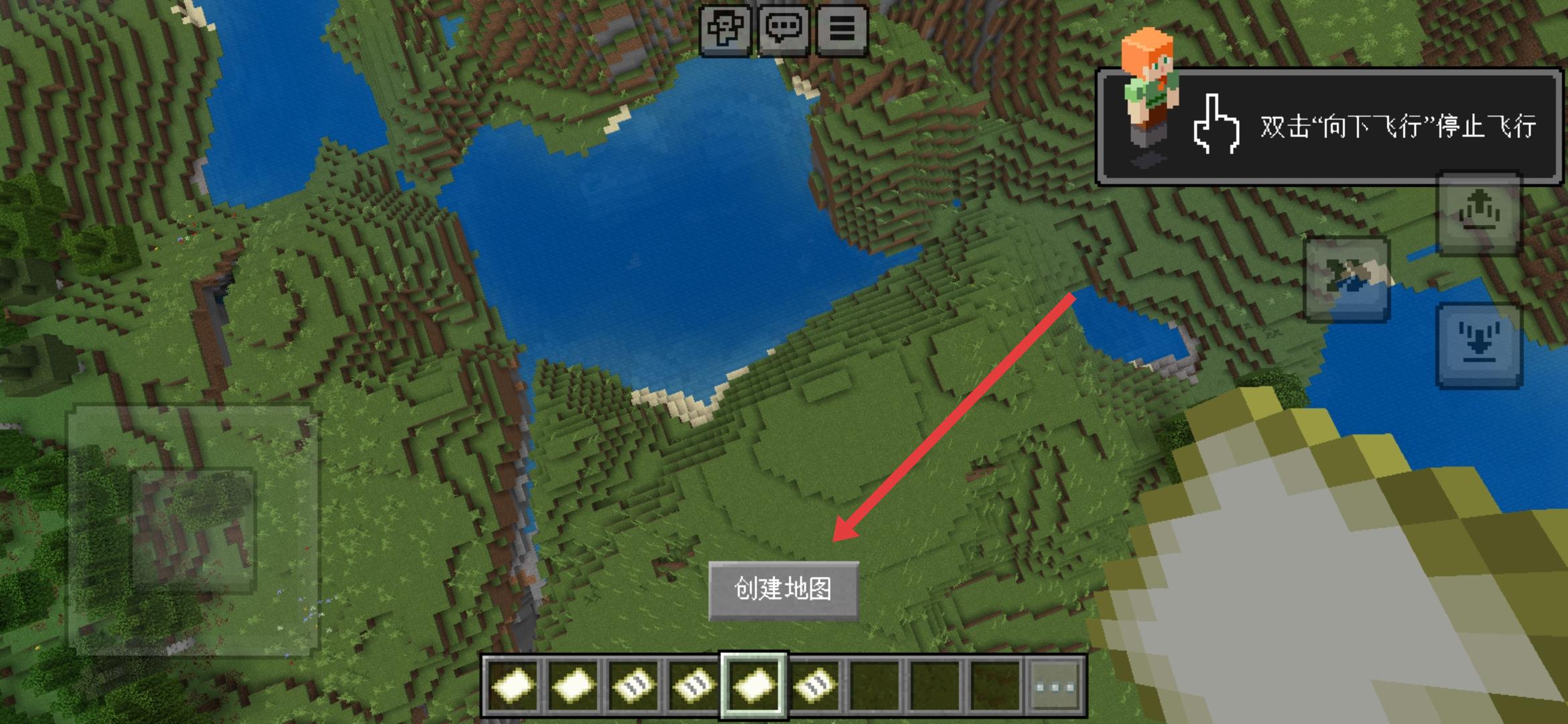 2、将合成的空白地图拿在手中,点击界面的创建地图或右键使用,激活地图的地形记录功能。