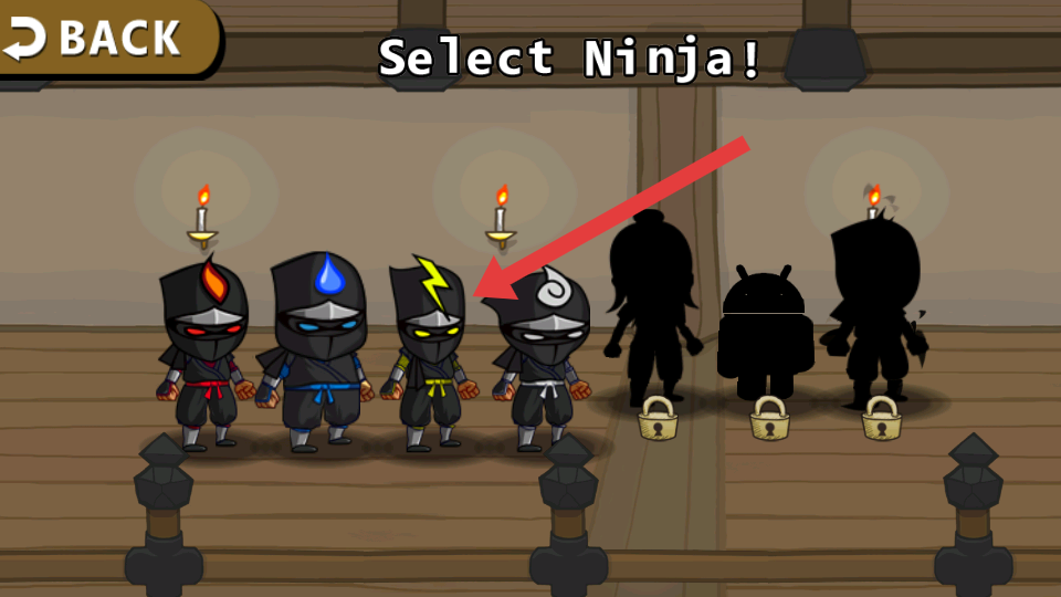 1、忍者选择与基础操作熟悉:进入作品后,从火、水、雷、风四系忍者中挑选符合自身偏好的角色,随后熟悉虚拟键盘的操作逻辑——通过控制忍者移动。