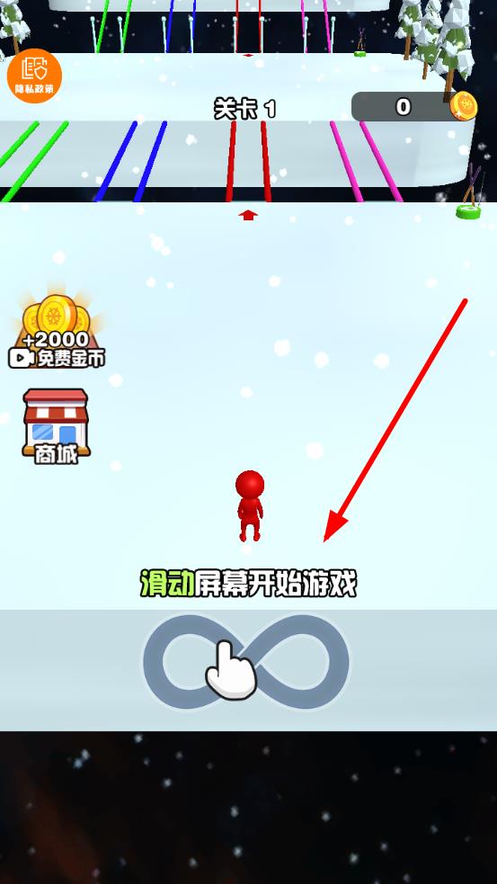 2、进入游戏关卡后,根据提示【滑动屏幕开始游戏】 ,操控小人移动。滑动屏幕时注意观察小人的移动方向,让小人能够顺利前进。