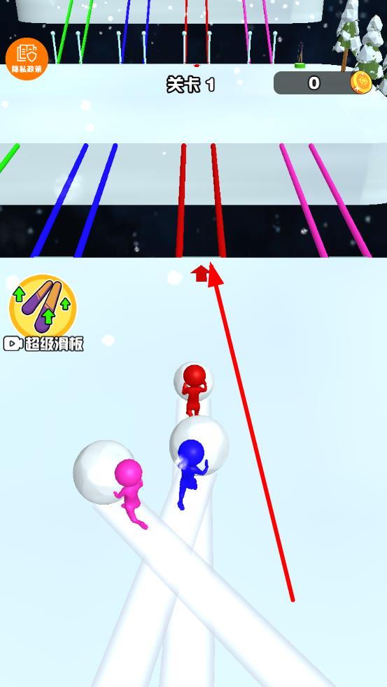 3、操控小人收集雪球 ,让雪球不断变大。同时要注意躲避其他小人的干扰,沿着箭头指示的方向前进,尽量在到达终点前让雪球变得足够大。