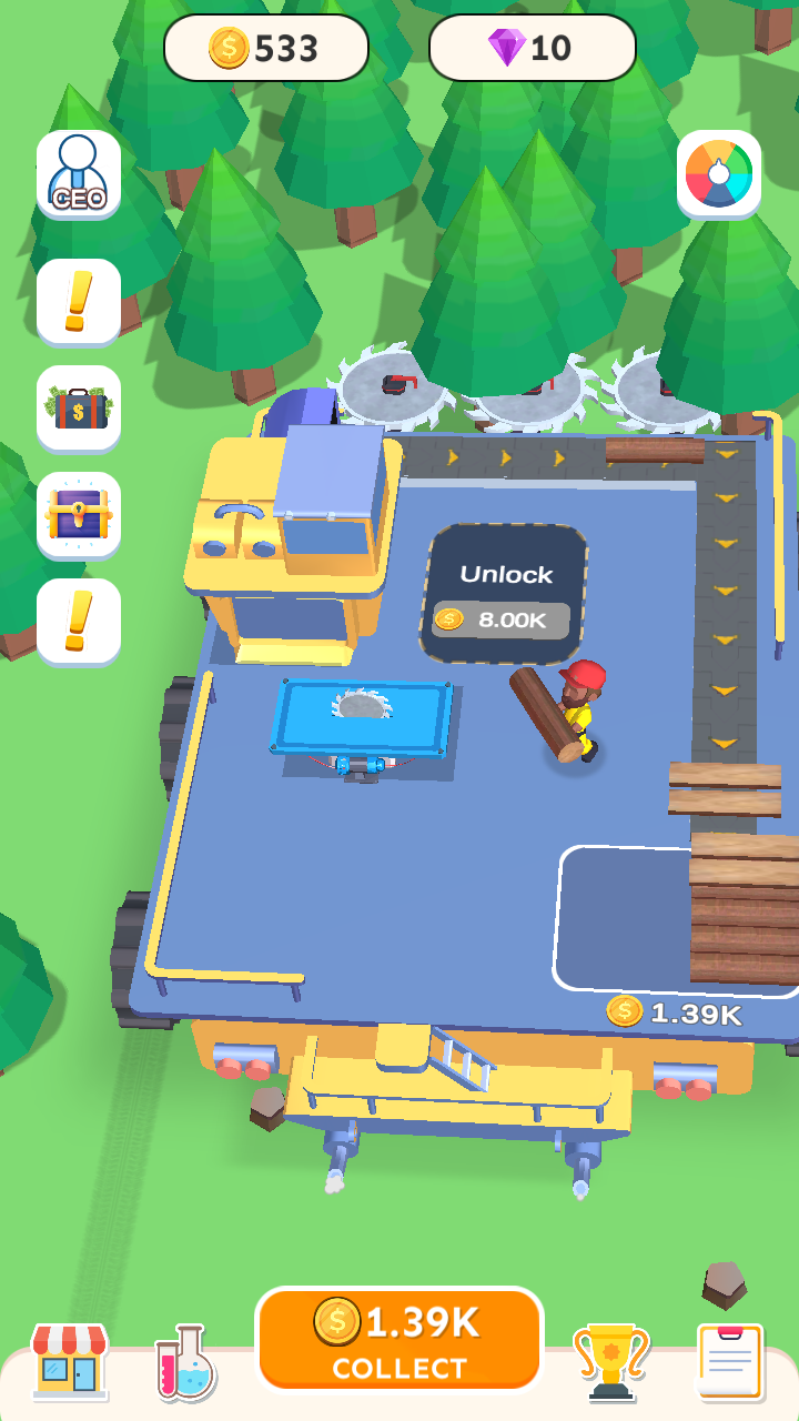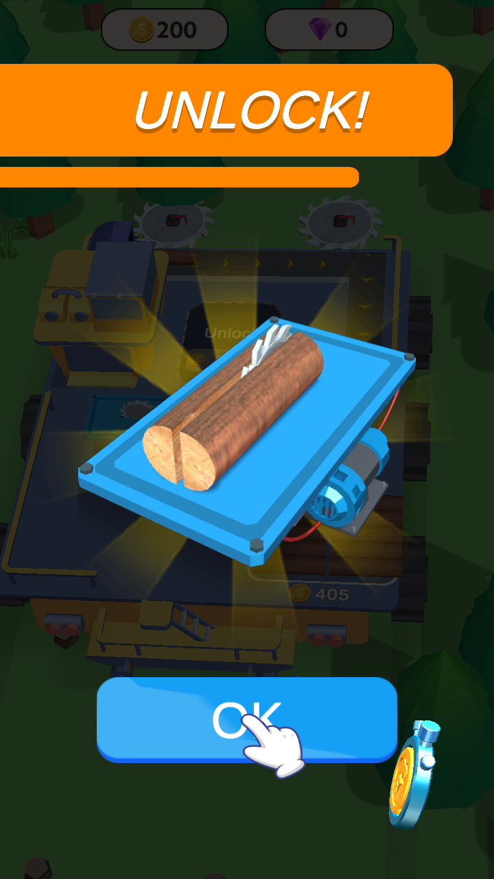 2、多样伐木机器:设计不同类型的伐木机器,每种机器有独特的切割方式与滚动速度,随着关卡推进可逐步解锁,让伐木过程充满变化与新鲜感。
