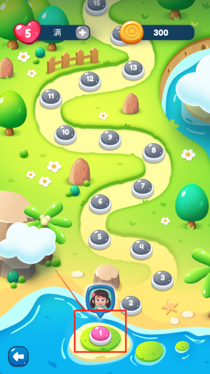 2、选择关卡:在地图上选择一个关卡,如“1”,然后点击进入。