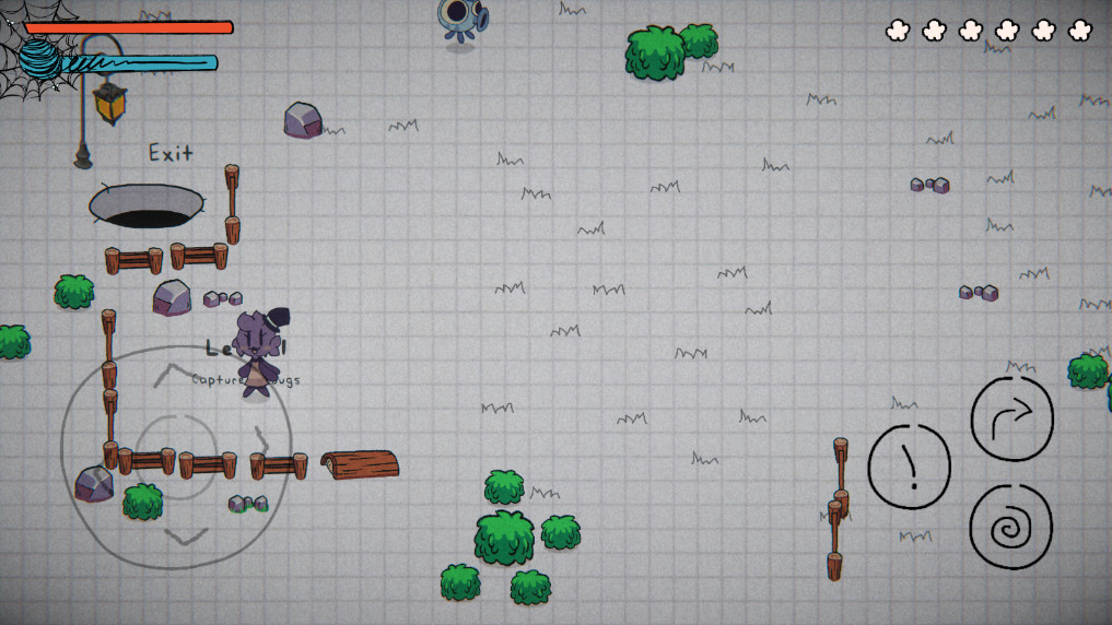 3.进到到游戏的第一关,摇杆是用来控制小蜘蛛的移动的,右侧可以进行互动和攻击等。