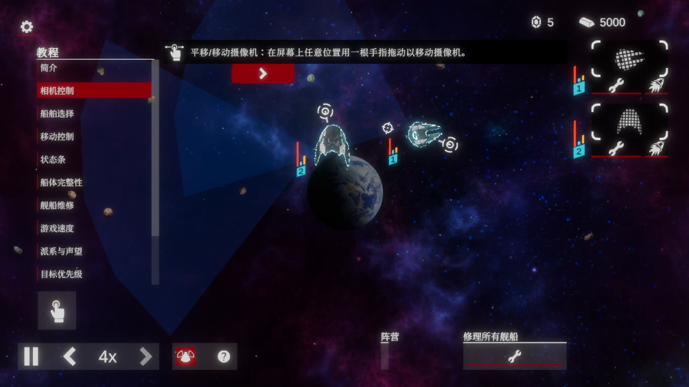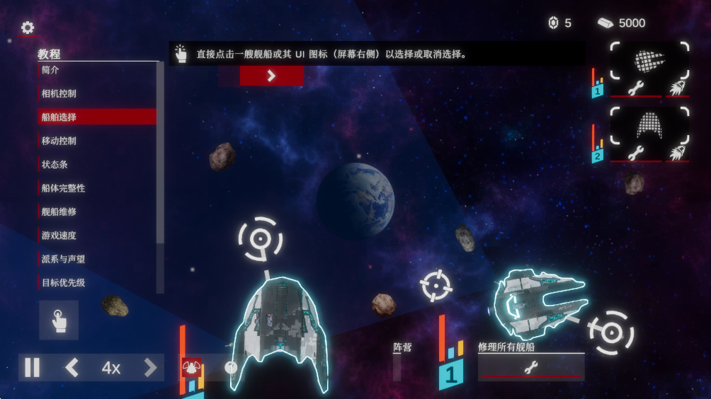 3.直接点击一艘舰船或其UI图标(屏幕右侧)以选择或取消选择,选择多艘舰船的话用一根手指按住左下角的修饰键,然后用另一根手指拖动选择框圈选要选择的舰船。