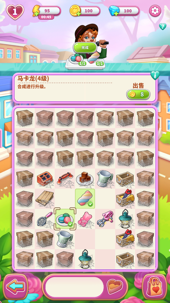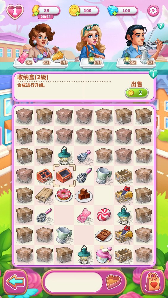 2.拖动两个相同的物品进行合成,合成后还会将附近的包装盒子打开,从而解锁更多的物品。