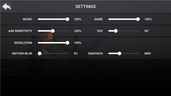 2、点击settings可以设置游戏音量以及系统设置。