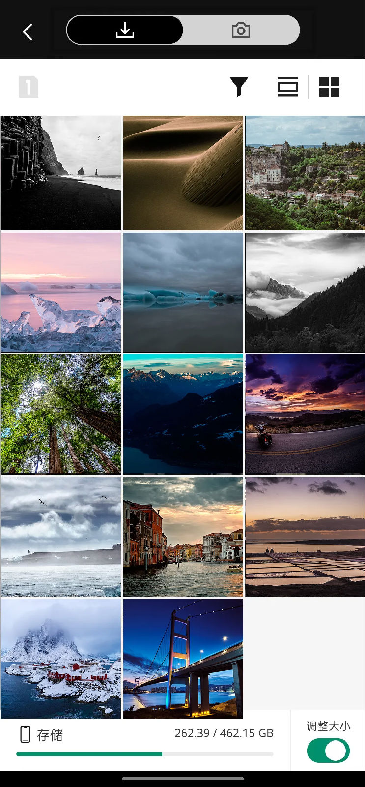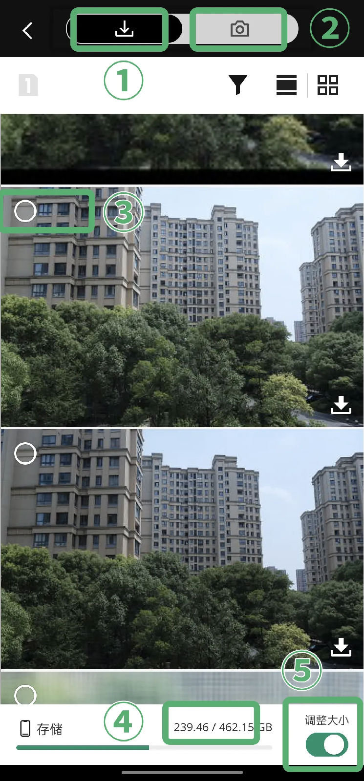 1.设备完成配对之后,只需点击XApp主页上的“图像采集/拍摄”按键,即可进入到图传界面选择需要导入到手机的影像。