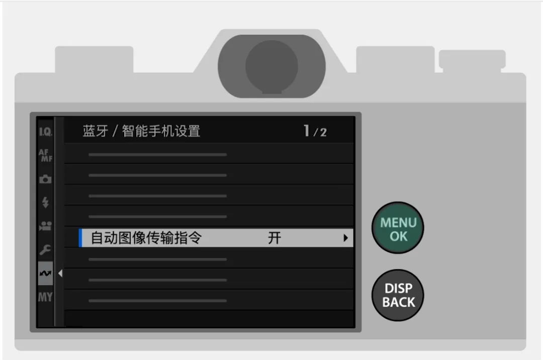 6.事先在相机菜单中将 "自动图像传输指令” 或“自动图像传输”设置为“开";