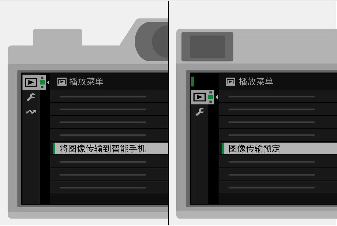 7.在 “播放菜单”的 “图像传输预定”或“将图像传输到智能手机”中选择要传输的图像。