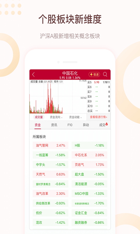 报价信息:提供全面、准确、快速的股市数据,包括Level2、Level-2 Plus、DDE决策、跟进向导、超级电波等。,并实时推送市场消息、个股机会和概念投资等个股信息,让市场动态一目了然。