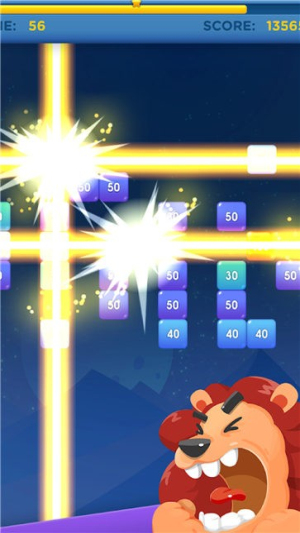 2、瞄准射击砖块:瞄准屏幕上的砖块开火,调整角度确保精准命中,通过连续射击扩大击破范围,推进关卡。
