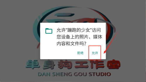 2、当弹出“允许‘蹦跑的少女’访问您设备上的照片、媒体内容和文件吗?”时,选择“允许”以继续。