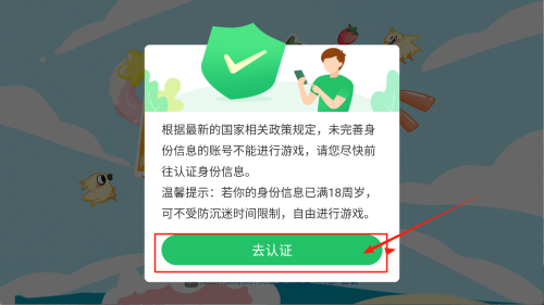 4、看到“未完善身份信息不能进行游戏”提示后,点击“去认证”,按指引完成实名认证即可畅玩。