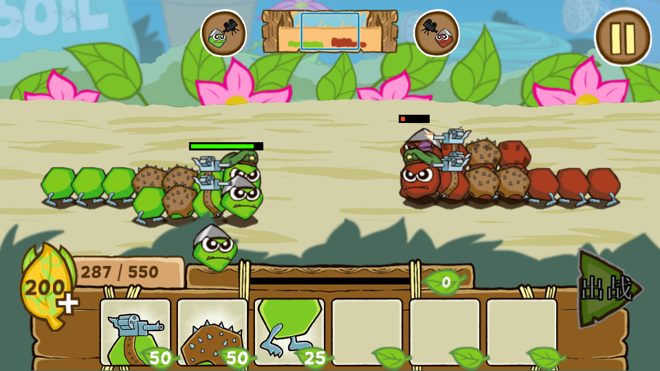 【战役】——运用您的方式来通过地图,并且攻克50道敌人的基地和5个阻止您前进的毛毛虫军团首领。