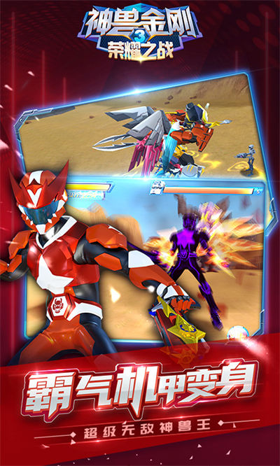 - 神兽金刚3荣耀之战游戏是一款由成都雷兽互动科技有限公司专为安卓用户打造的以神兽金刚为题材的动作手游,游戏为玩家准备了n多超霸气的机甲人物哦,喜