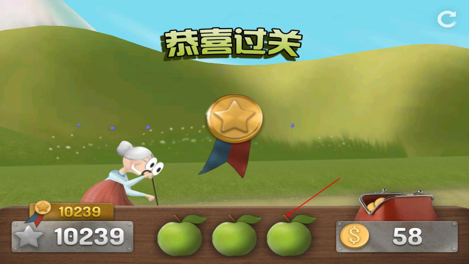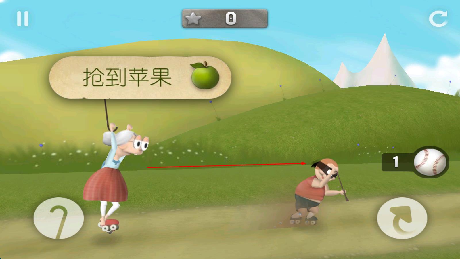 游戏中,老奶奶拾取苹果可以获得很高的分数