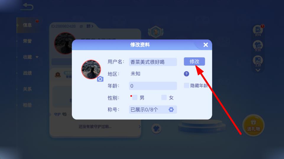 3、在修改资料弹窗中,找到用户名一栏,点击其右侧的修改按钮,输入想要更改的新名字,确认后即可完成名字修改。