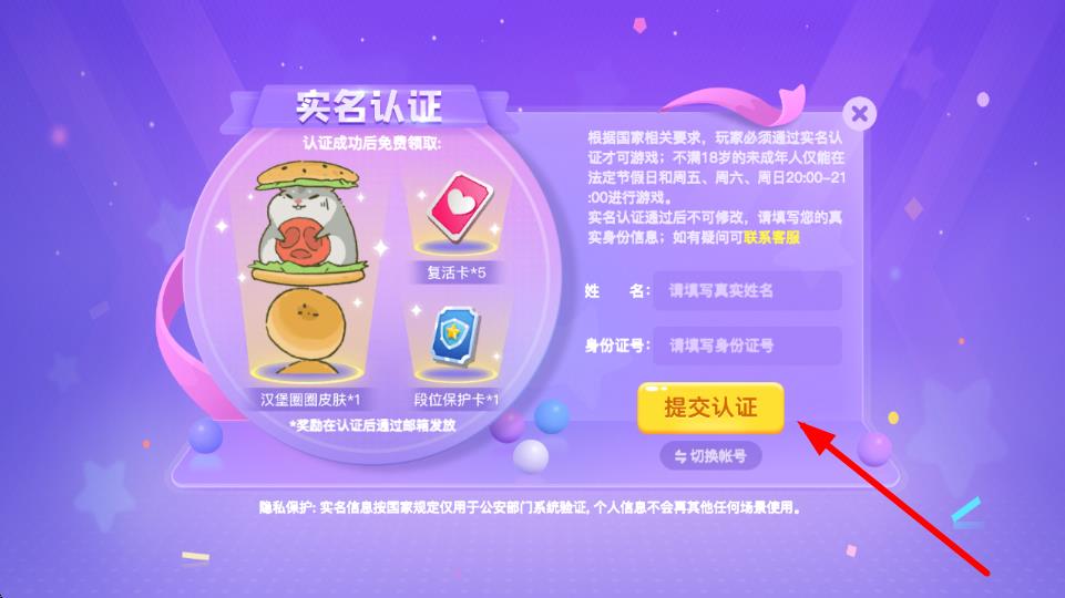 1、进入实名认证界面,在右侧输入框依次填写真实姓名、身份证号 ,确认信息无误后,点击提交认证按钮,进行实名认证信息提交。
