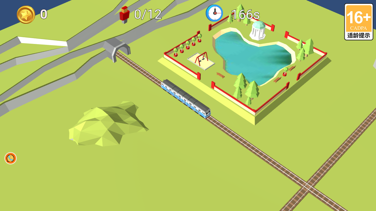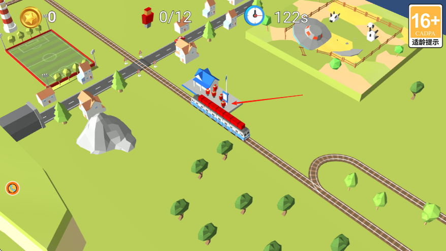2、留意时间剩余【122s】,观察火车行驶路线,当火车经过站点时,让其停靠载人,提升任务进度。