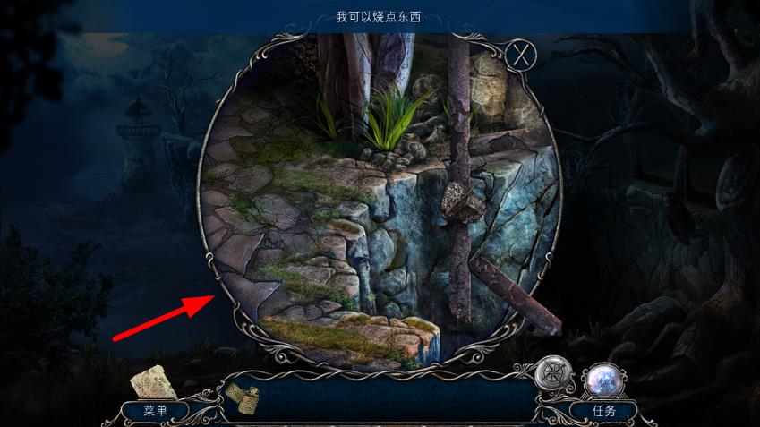 1、进入游戏后,置身于风暴山脚下的初始场景,通过点击屏幕查看可交互物品,如捡起石块、翻开落叶,在探索中熟悉操作方式与场景布局。