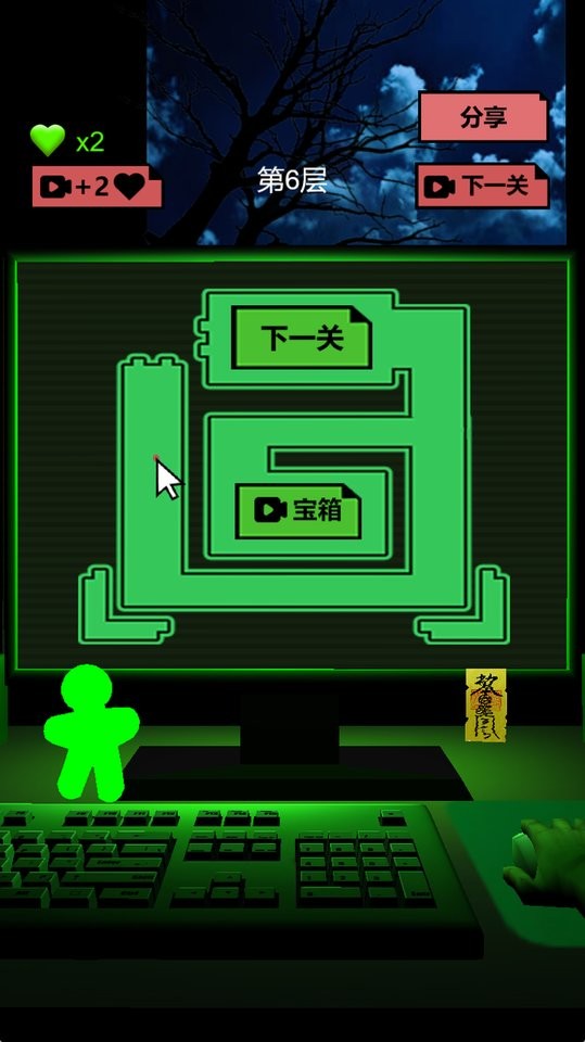 - 恐怖电脑是一款极具创意的迷宫恐怖游戏,巧妙融合了迷宫探索与恐怖氛围,玩家将在虚拟的电脑迷宫中艰难穿行,破解谜题寻找出路,同时必须时刻留意现实世界