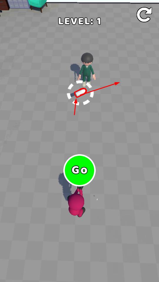1、进入关卡后,调整射击方向瞄准目标区域,确认角度后点击绿色GO按钮发射道具,开启对战流程。