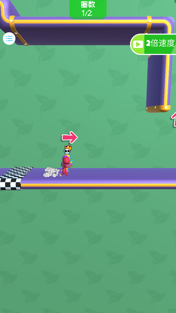 1、游戏开始,操控红色小人按红箭头方向移动,沿着管道行进,留意绿色箭头指示,收集途中道具。