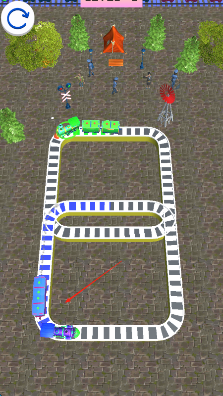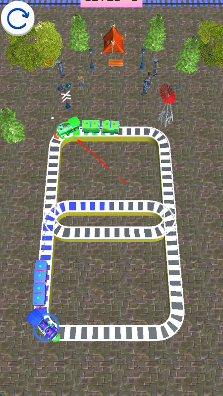 1、开局观察轨道布局,操控火车沿红箭头方向行驶,留意其他火车位置,避免相撞,逐步推进。