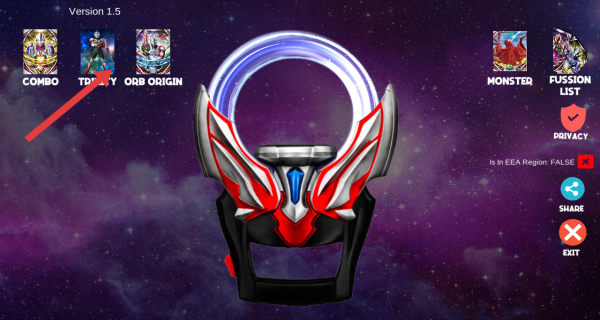 1、进入游戏后点击屏幕中央的欧布圆环启动变身器,听着真实音效等待启动完成,准备开始选择融合卡牌。
