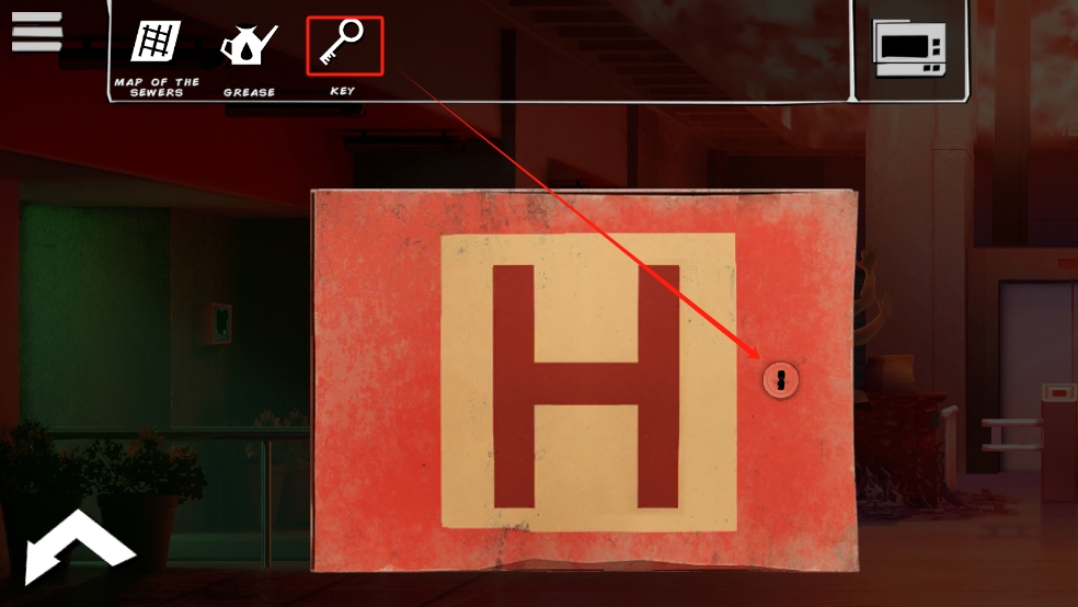 2、看到H标识箱子的钥匙孔,从道具栏选钥匙拖到孔处插入解锁,拿到关键的隐藏物品,持续推进探索进度。